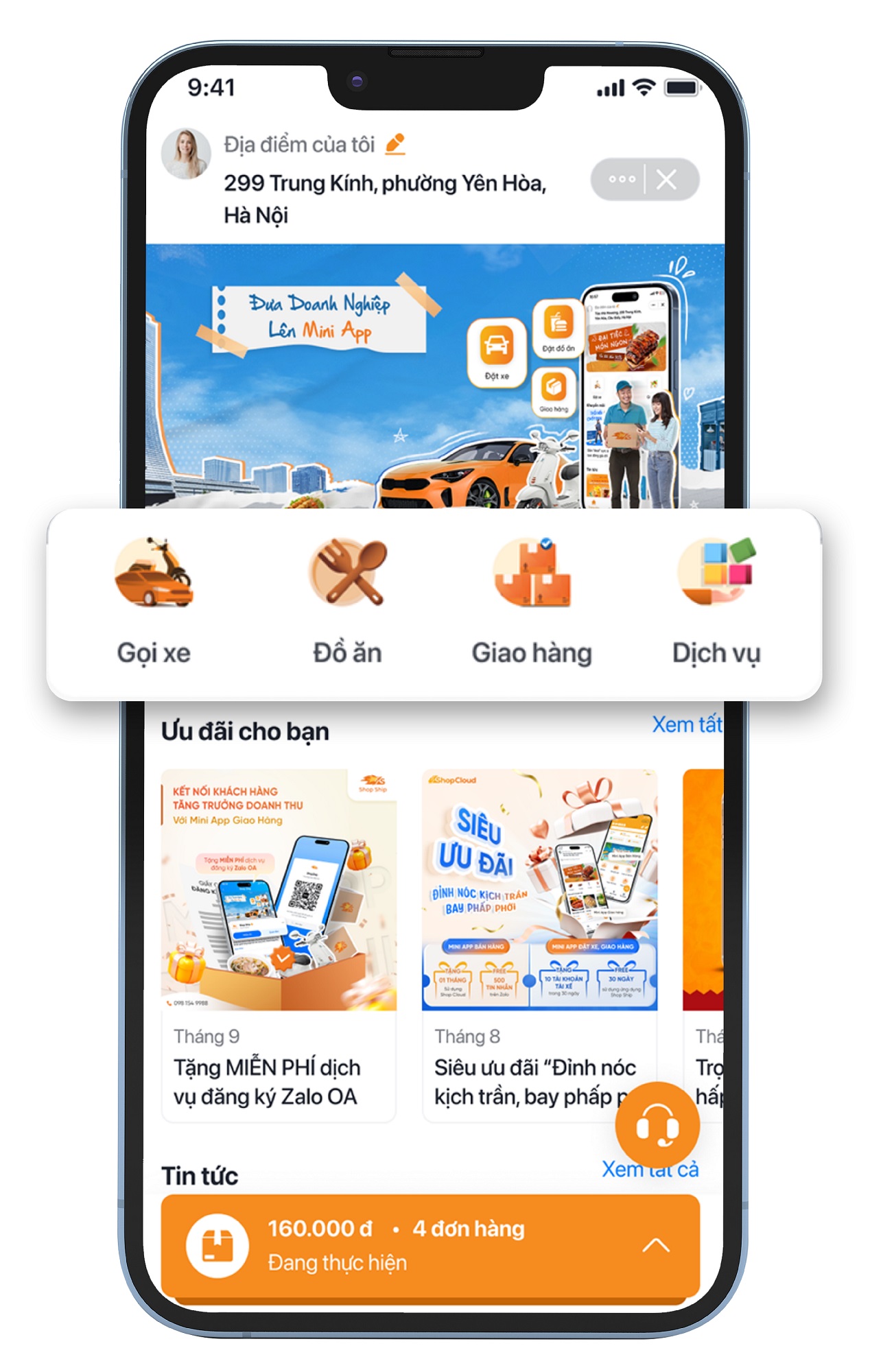 Hệ sinh thái đặt xe, giao hàng, đặt dịch vụ trên zalo của Shop Ship
